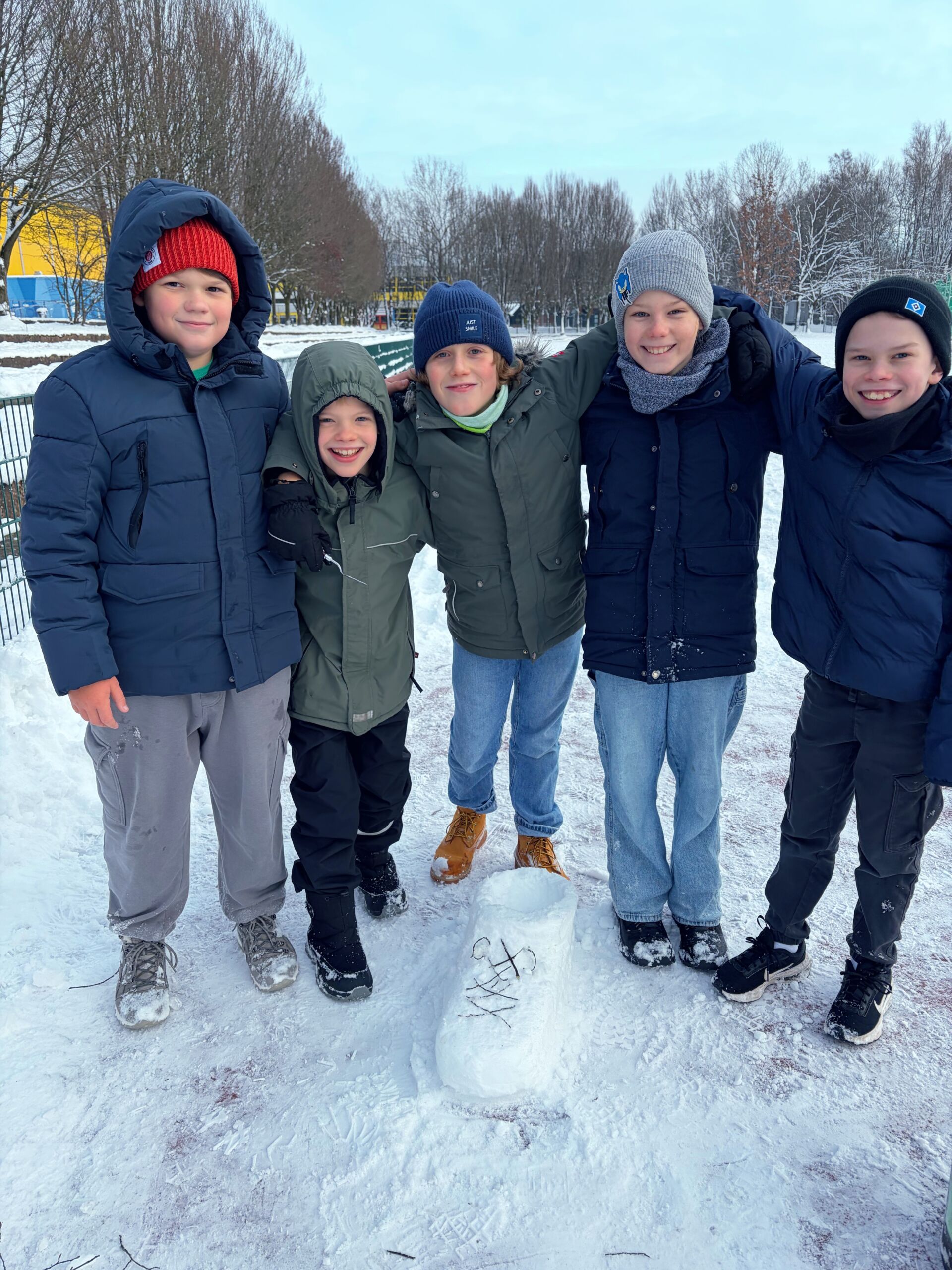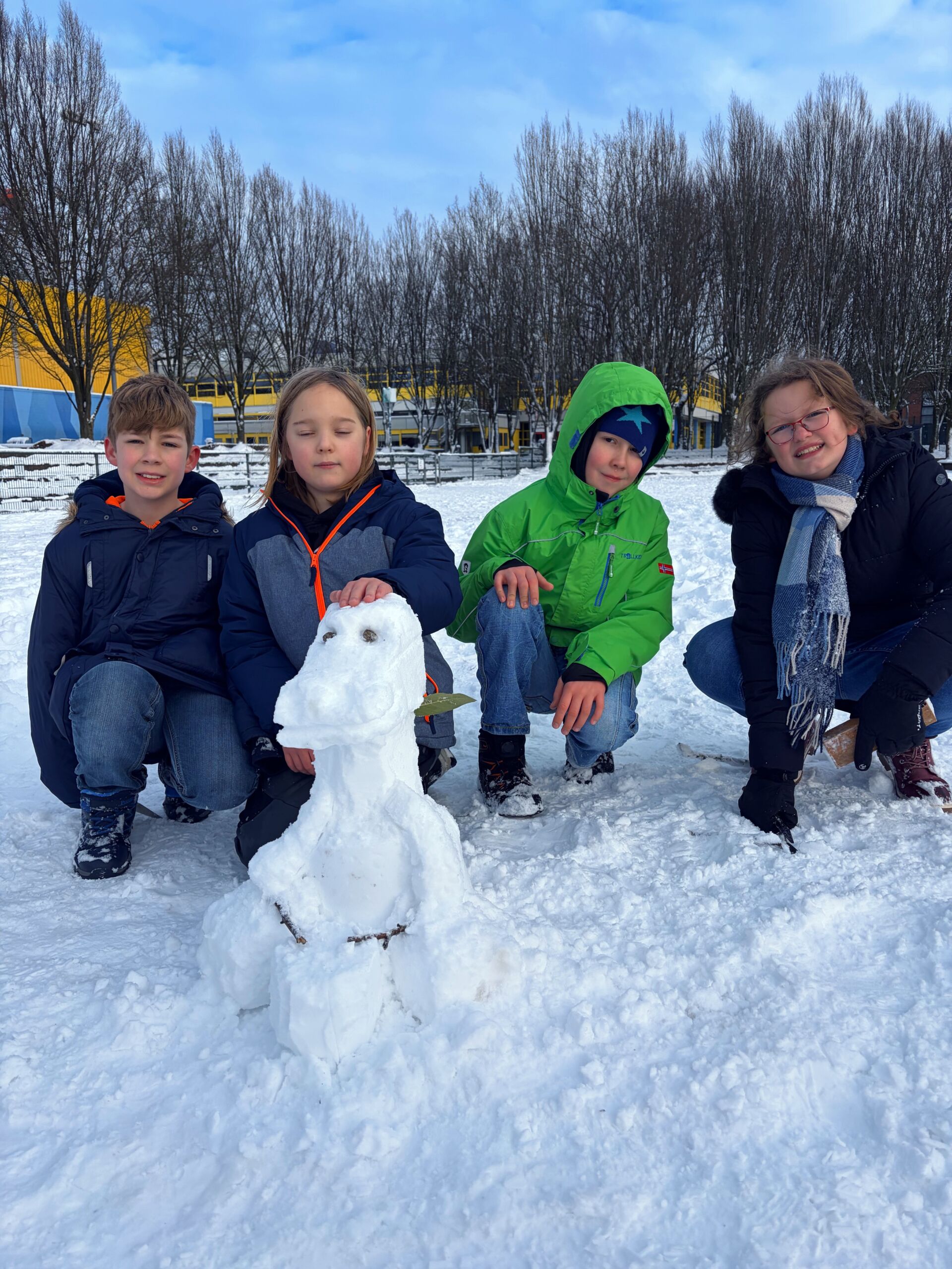 Gar nicht so einfach wie gedacht, wenn der Schnee nicht auf Anhieb halten will. Aber mit Teamgeist und ein wenig Geduld haben alle am Ende schöne und kreative Schneeskulpturen entstehen lassen, die abschließend stolz präsentiert wurden.