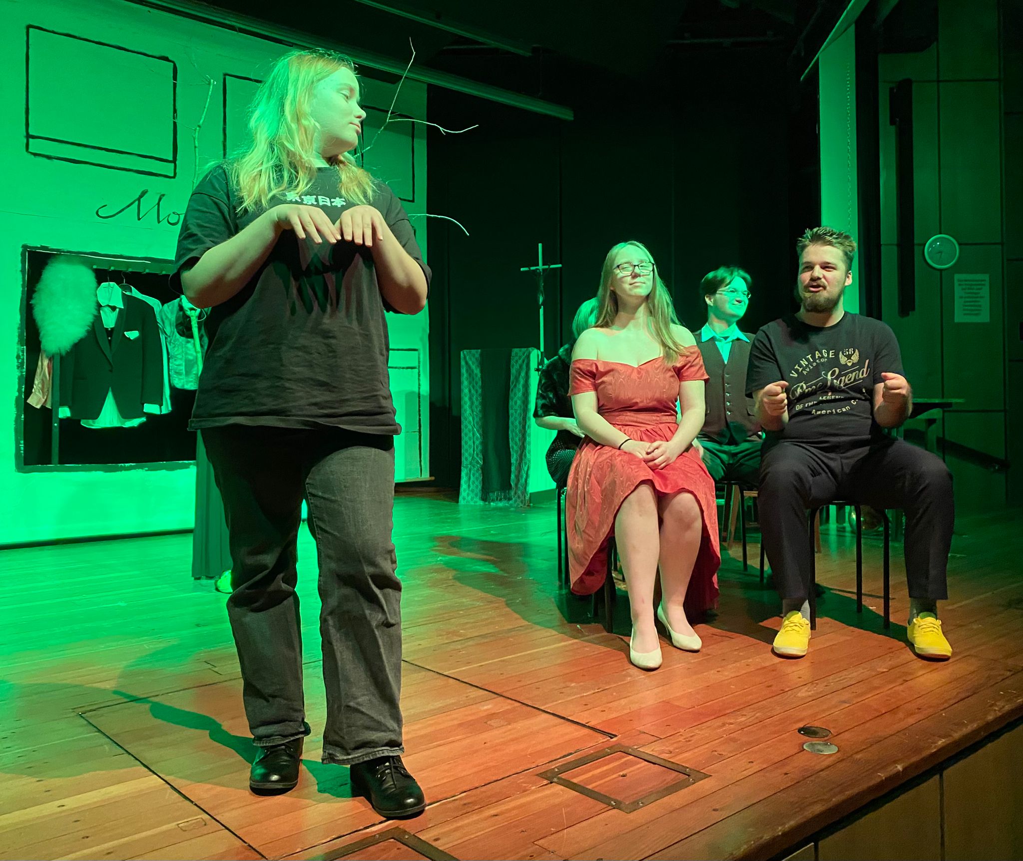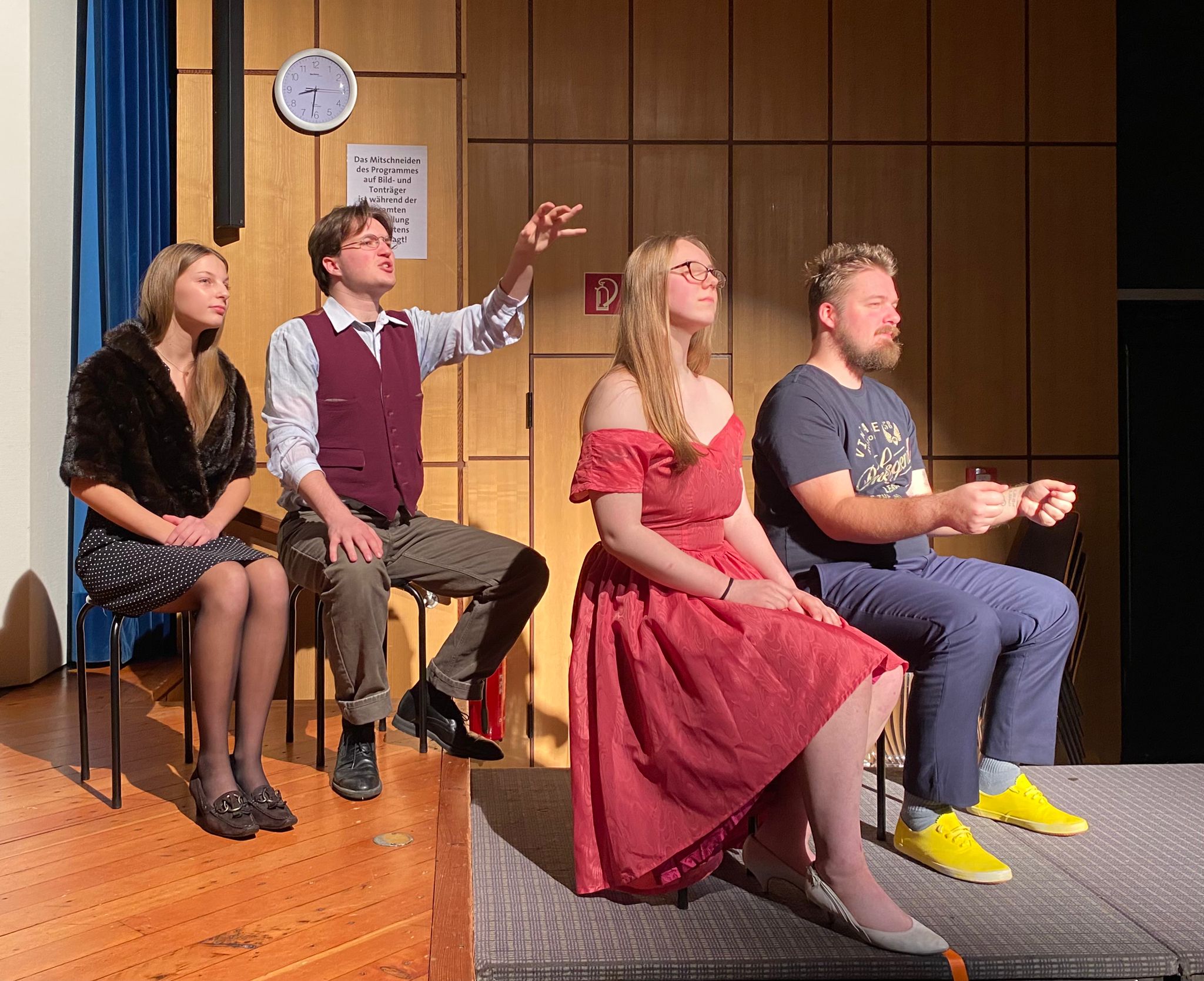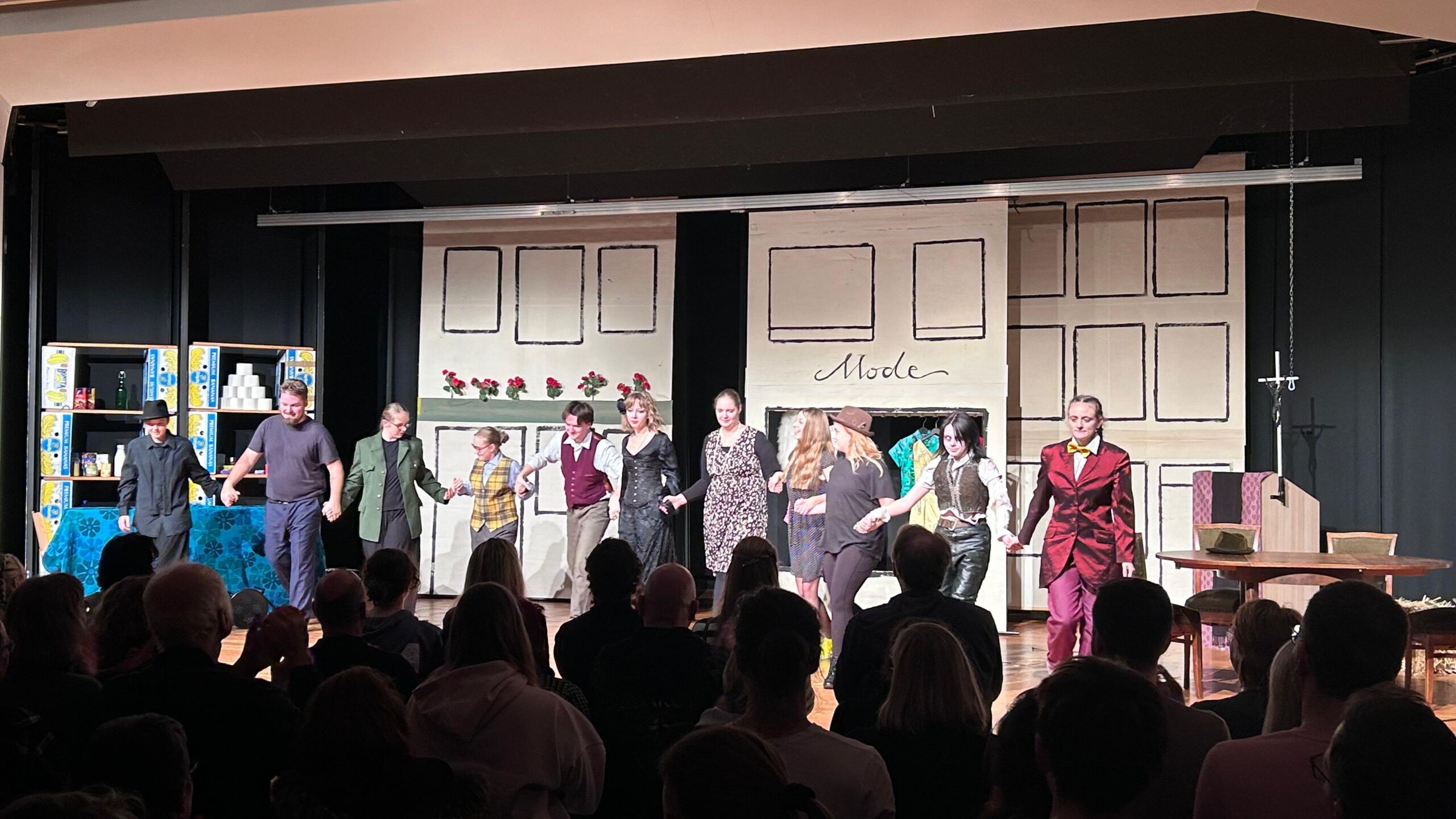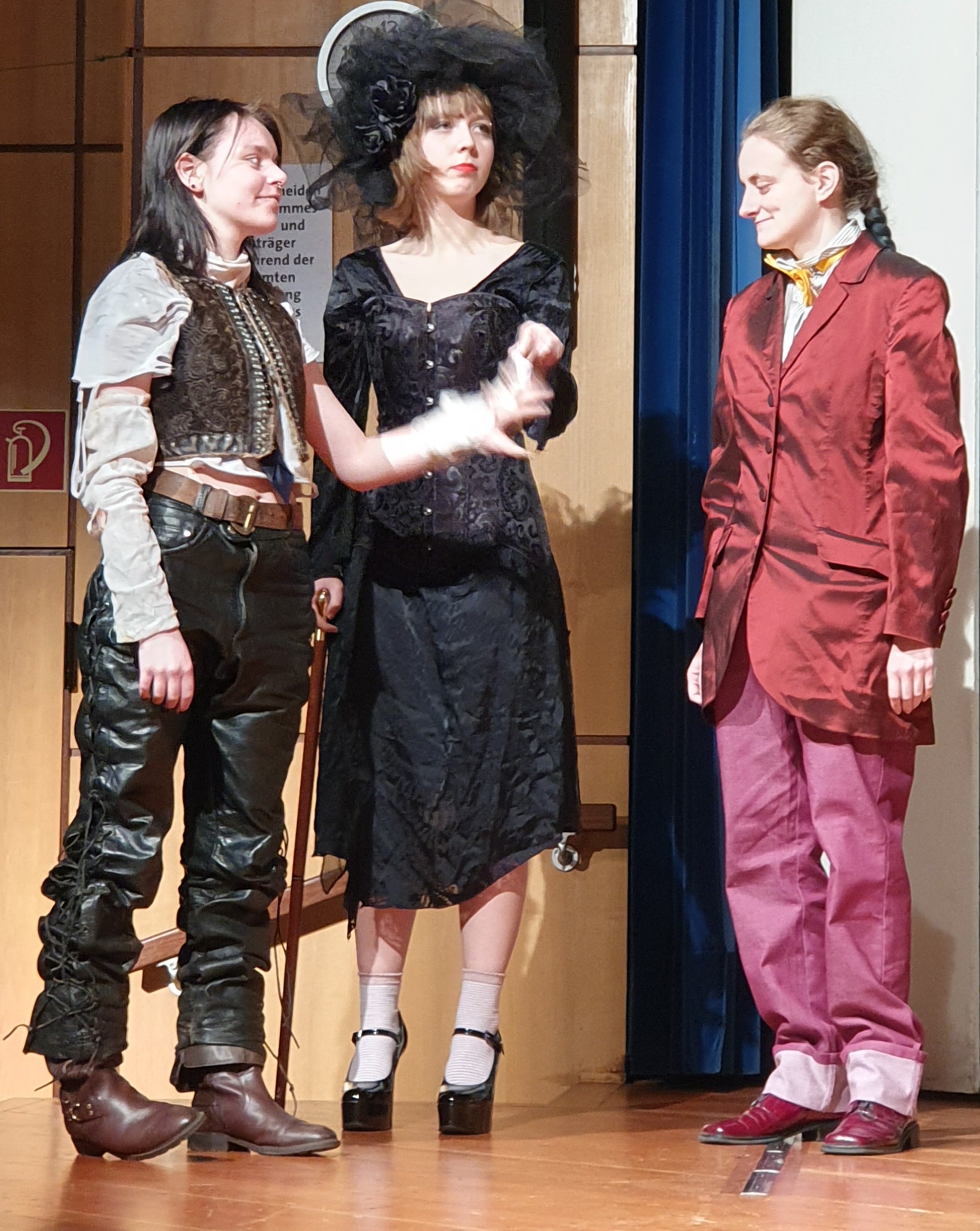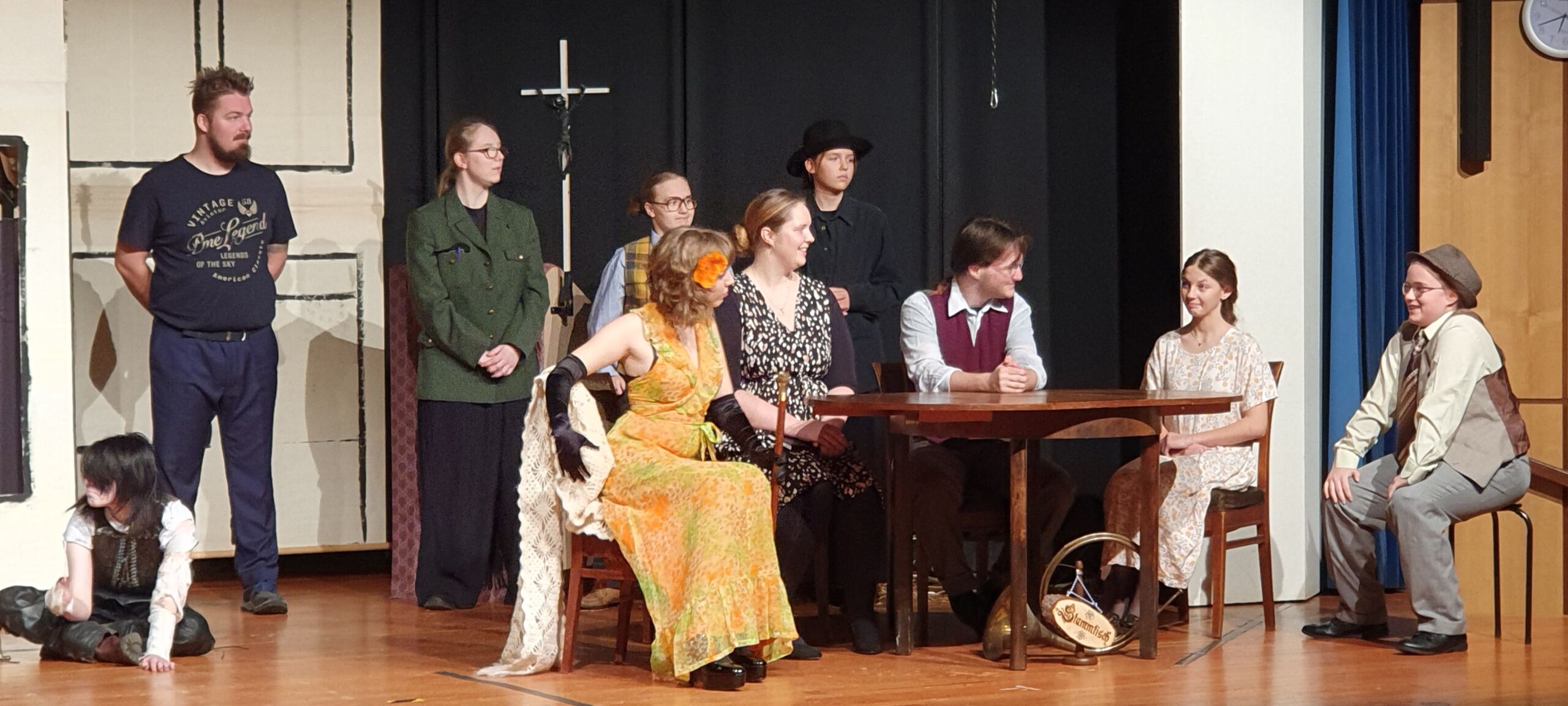 Nach einer zweimonatigen Pause bedanken wir uns bei unserem Publikum für drei wunderbare Theaterabende zum „Besuch der alten Dame“ von Dürrenmatt Ende November. Der Freitag und der Samstag waren sogar sehr gut besucht und es gab Standing Ovations. Auch viele Ehemalige aus der Schüler-, Eltern- und Lehrerschaft fanden den Weg zu uns.